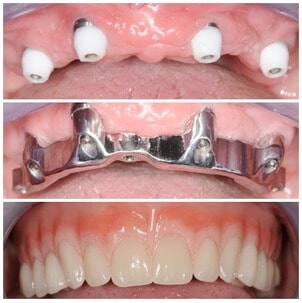 Danas u svijetu standard u protetskoj sanaciji totalno bezubih pacijenata čine proteze ili mostovi na implantatima (Slika 1, 2 i 3). Jedan naš slučaj sanacije totalne bezubosti protezama na implantatima prikazan je dalje u tekstu.
