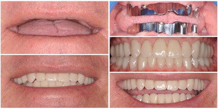Slika 2. Od ugradnje implantata do predaje hibridne proteze koja je totalno individualizirana tako da vjerno oponaša i tvrda (zube) i meka (zubno meso) tkiva.
